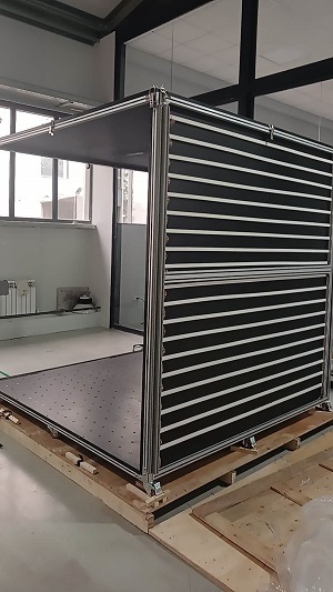 Las dimensiones del dispositivo son: la base 1000milímetrox1000m m y con una altura de 1000 milímetros, incluye las placas bilaterales, una parte inferior y una placa superior, la placa superior se puede quitar, la chapa fonda montada en una estructura con las ruedas, para permitir su movimiento.